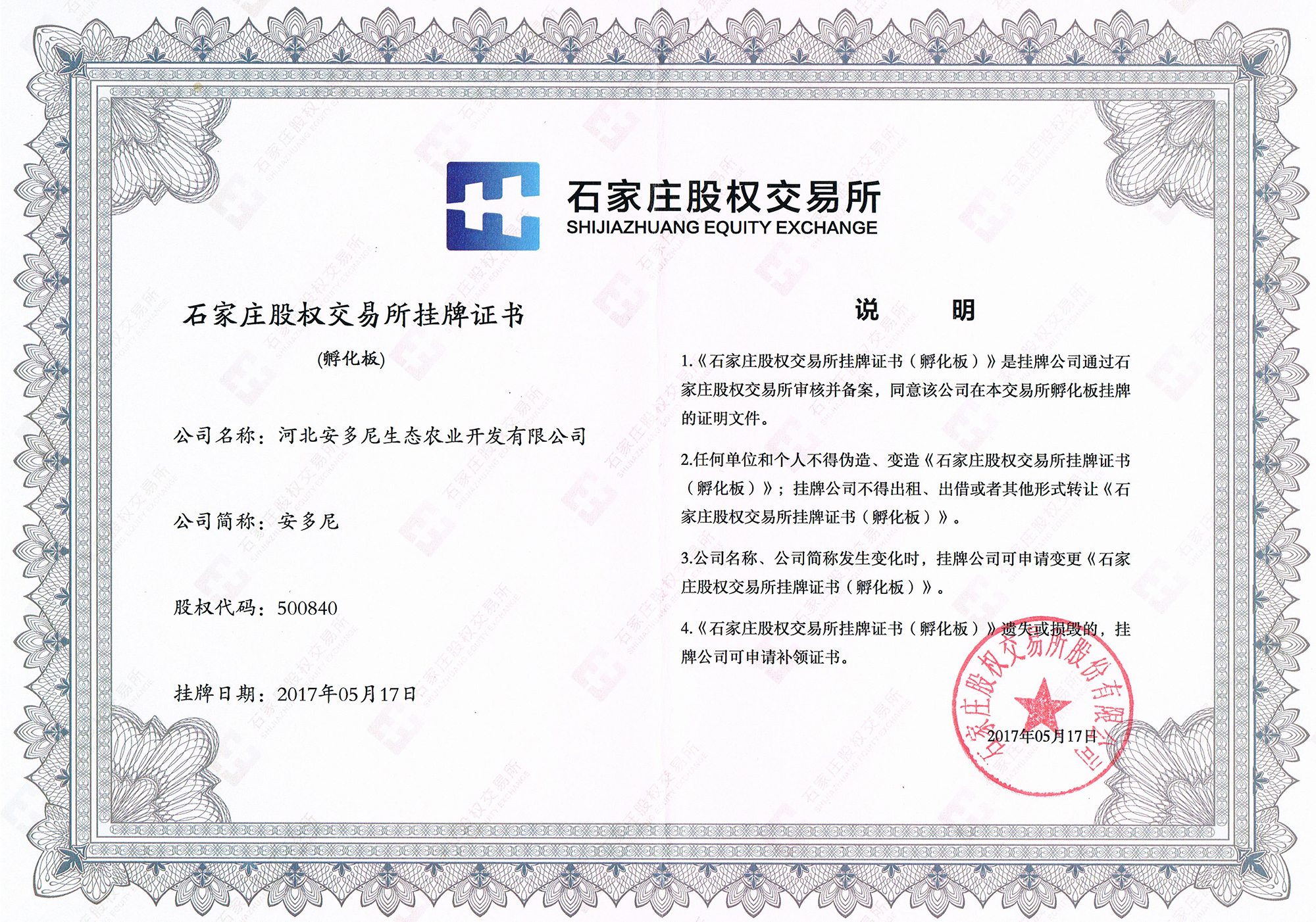 安多尼生態(tài)農業(yè)開發(fā)有限公司專業(yè)從事生態(tài)農業(yè)和微生物肥料研發(fā)、生產和銷售,并于2017年在河北石家莊股權交易所掛牌,股權代碼:500840。