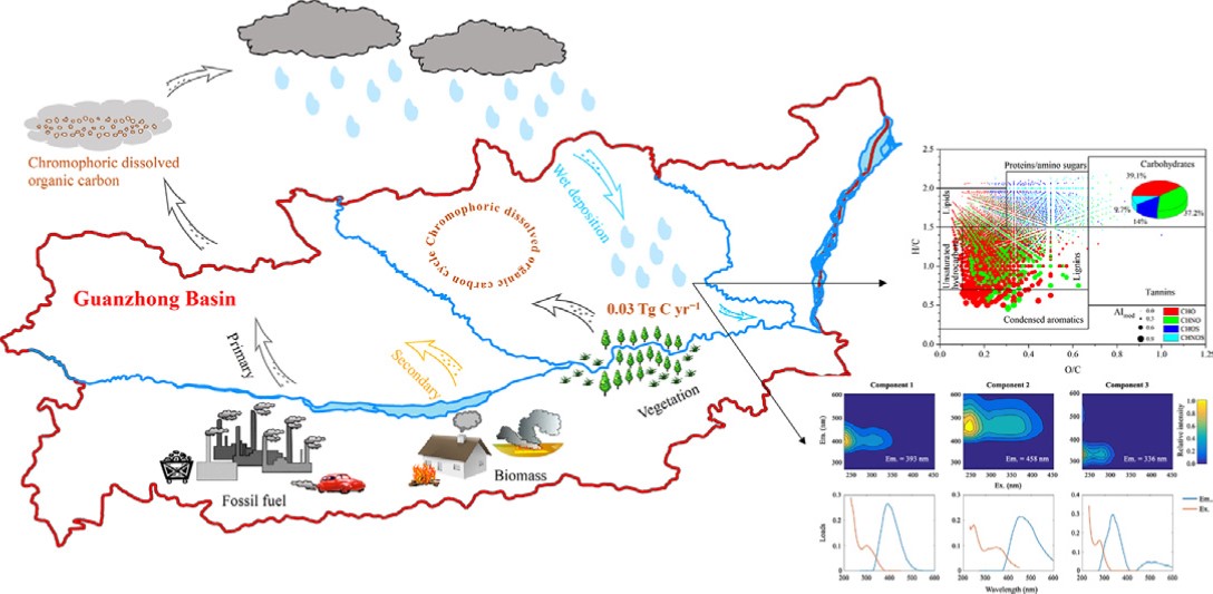 李小飛副教授在環(huán)境領(lǐng)域TOP期刊Science of the Total Environment發(fā)表了題為Chromophoric dissolved organic carbon cycle and its molecular compositions and optical properties in precipitation in the Guanzhong basin, China的研究文章。利用激發(fā)發(fā)射矩陣熒光光譜、傅里葉變換離子共振質(zhì)譜以及源解析模型研究了關(guān)中盆地大氣降水中水溶性有機(jī)碳(WSOC)的光學(xué)特征、分子特性和來(lái)源。李小飛指出西安市WSOC中有兩種腐殖質(zhì)樣物質(zhì)(HULIS)和一種蛋白樣物質(zhì)(PRLIS)共三種熒光組分,且總熒光強(qiáng)度的79%由HULIS提供。木質(zhì)素、蛋白質(zhì)/氨基糖和脂質(zhì)是主要化合物。二次前體物、煤燃燒和二次氣溶膠是西安WSOC的主要來(lái)源。此外,估算發(fā)現(xiàn)西安大氣降水中WSOC的濕沉積量約為0.63 g C·m?2yr?1。這些研究成果增加了我們對(duì)吸光性有機(jī)碳估算的理解。
