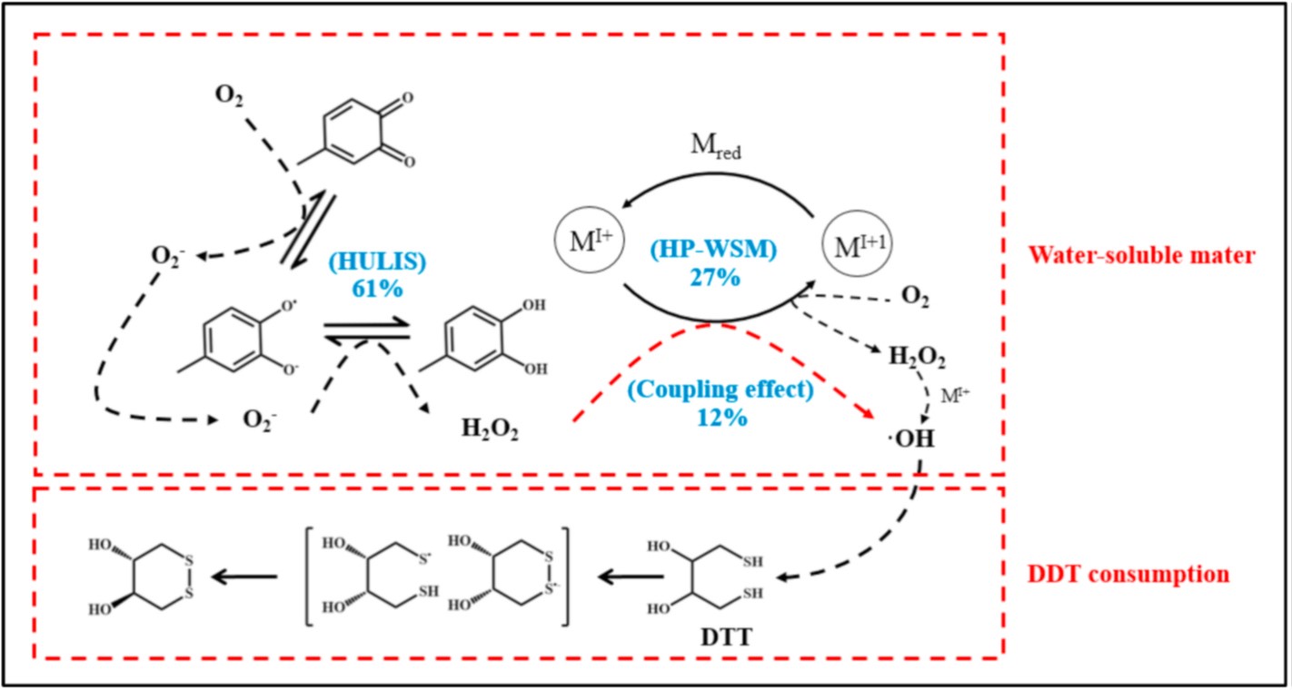 陳慶彩教授在環(huán)境領(lǐng)域TOP期刊Environmental Research發(fā)表了題為“Oxidation potential and coupling effects of the fractionated components in airborne fine particulate matter”的研究文章。詳細(xì)探討了不同PM2.5組分對(duì)大氣顆粒物氧化毒性的貢獻(xiàn),并揭示了其主要機(jī)制,進(jìn)而探究了不同組分間氧化毒性產(chǎn)生的耦合效應(yīng)和非均質(zhì)特性。成果指出金屬離子等高極性物質(zhì)對(duì)水溶性PM2.5氧化活性的貢獻(xiàn)更大,其中呼吸的氧分子是氧化毒性生成最重要的前體物質(zhì)。水不溶性PM2.5組分具有重要的氧化毒性貢獻(xiàn),而且能夠?qū)ρ趸拘缘漠a(chǎn)生有較長(zhǎng)時(shí)間的影響作用,水不溶性組分表現(xiàn)出多相反應(yīng)特征,研究推測(cè)這部分氧化毒性與新型健康風(fēng)險(xiǎn)物質(zhì)-長(zhǎng)壽命自由基(EPFRs)直接相關(guān)。