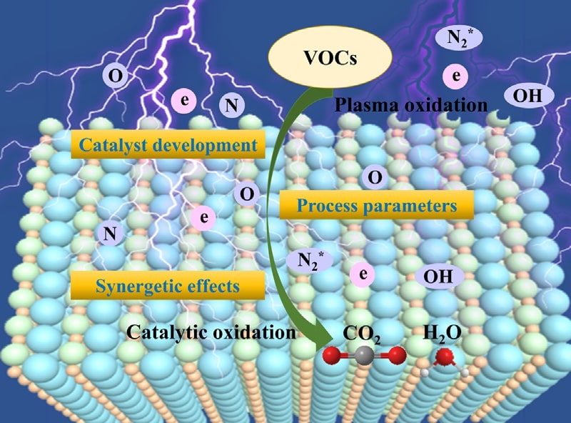 等離子體協(xié)同催化降解VOCs示意圖
